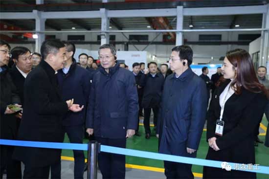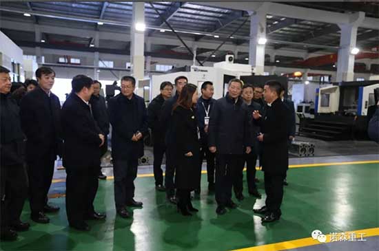 2019年12月18日,鹽城市委書記戴源、市長曹路寶及副市長、濱??h委書記孫軼、縣長劉永軒等領(lǐng)導一行蒞臨江蘇諾森重工有限公司參觀考察企業(yè)發(fā)展情況。諾森重工董事長劉春梅,總經(jīng)理王海濤全程陪同視察。